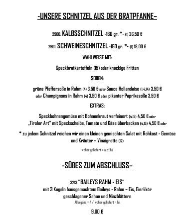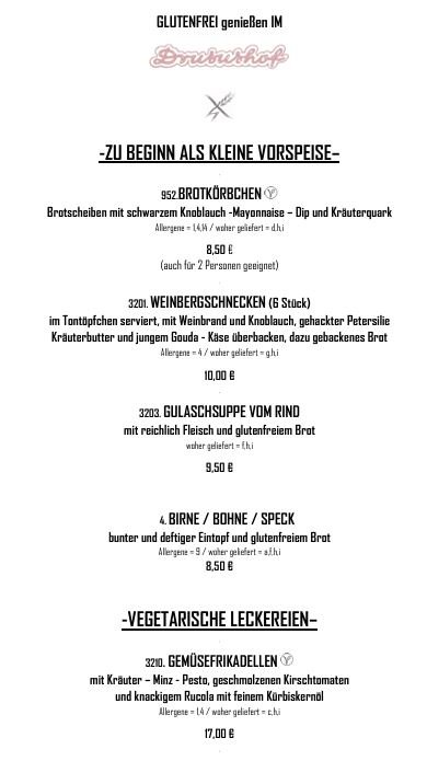 UNSERE AKTUELLE GLUTENFREIE SPEISEKARTE
