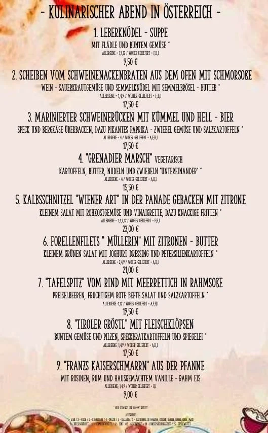 unsere Speisekarte zu unserem kulinarischem Tag im Österreich
