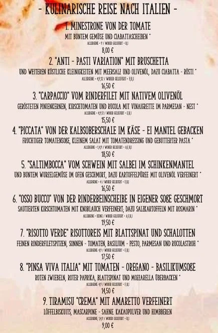 unsere Speisekarte zu unserem kulinarischem Tag: